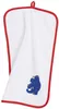 Weiches Kinderhandtuch im praktischen Miniformat von 30 x 50 cm. Verziert mit einer süßen Applikation des blauen Elefanten und einem Rot eingefassten Rand.