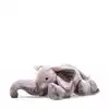 Ein neues Mitglied der Trampili Familie kann jetzt mit seinem Anblick erfreuen. Trampili Elefant ist 85 cm groß und hat sich in kuschelweichen grauen Plüsch gekleidet. Seine Innenohren und die Fußsohlen sind aus Plüsch in hellerem Grau gearbeitet. Sein Mund besteht innen aus rosa Samt. Die Innenohren sind in Rosa bemalt. Das weitgereiste, entspannt daliegende Kerlchen ist so niedlich, dass man es einfach gernhaben muss.